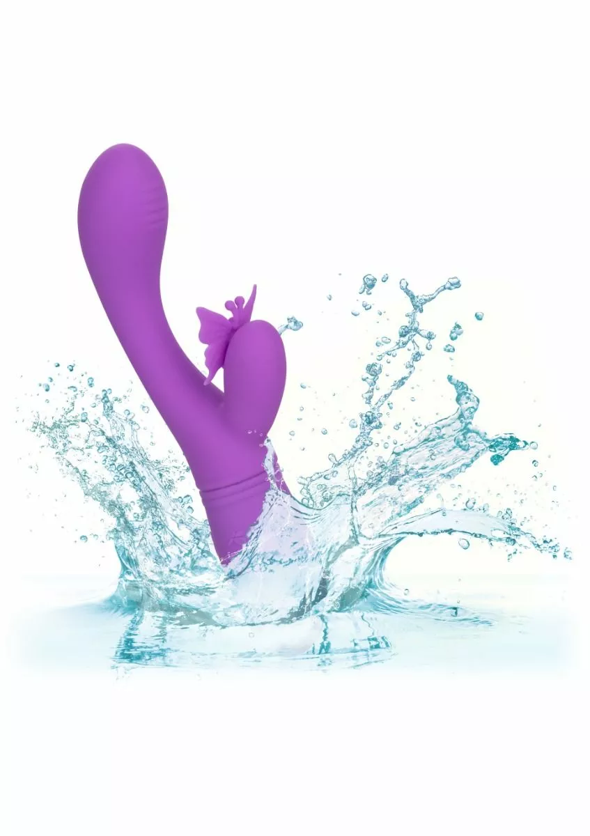 De Vibrator Butterfly Kiss Flutter van CalExotics heeft 10 krachtige vibratiestanden, dubbele motoren en een fladderende vlinderteaser. De standen zijn eenvoudig te bedienen op het speeltje zelf. Butterfly Kiss Flutter is oplaadbaar met de meegeleverde USB oplaadkabel. Laad de vibrator op in 1 uur en 25 minuten. Helemaal opgeladen geniet je 55 minuten op lage snelheid en 40 minuten op hoge snelheid. Maak de vibrator na gebruik schoon met een toycleaner.