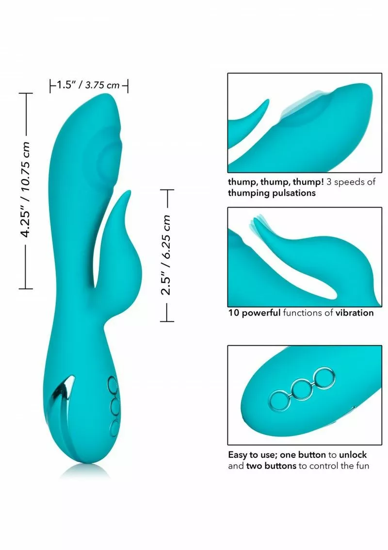 Zelfs tijdens de meest koude nachten zal de Santa Monica Starlet G-spot stimulator je een heerlijk warm gevoel geven. Deze groene G-spot vibrator ziet er niet alleen schattig uit, maar is ook van alle gemakken voorzien. Deze vibrator heeft een ergonomische vorm om zo snel en makkelijk jouw G-spot te vinden en beschikt daarnaast over een clitoris stimulator. Dubbel genieten dus met de Santa Monica Starlet! De ergonomisch ontworpen G-spot en clitoris vibrator is klaar om je met maar liefst 10 krachtige functies van vibratie te verwennen. De schacht pulseert terwijl in de licht gebogen punt een unieke g-spot stimulator zit. De g-spot stimulator draait met drie verschillende snelheden. En dat is niet alles! Deze oplaadbare seks toy beschikt daarnaast over een clitorisstimulator die kleine stootbewegingen maakt. Je kunt alle standen met gemak en afzonderlijk van elkaar bedienen met het push button systeem aan de onderkant van deze veelzijdige vibrator. Je zal niet weten wat je overkomt! Maar dat hoeft ook niet. Genieten is het enige waar jij nog over na hoeft te denken met de Santa Monica Starlet G-spot stimulator.