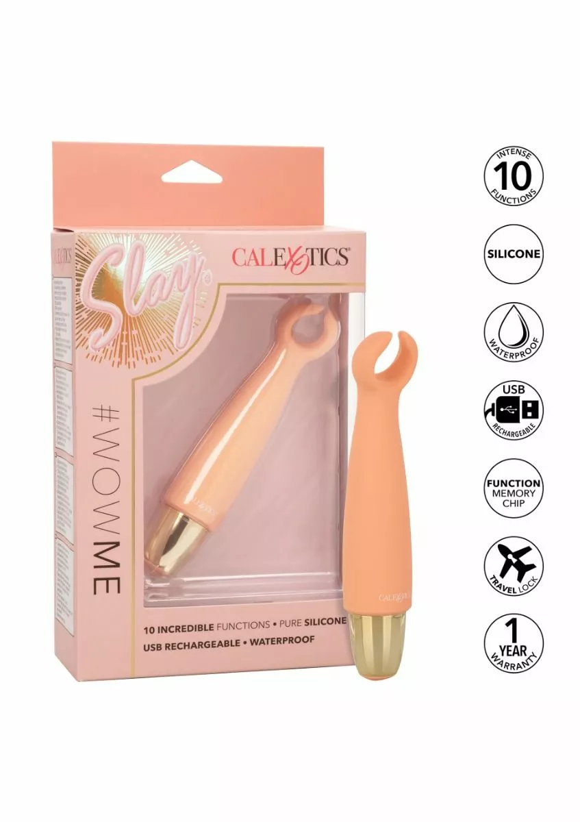 De Multifunctionele vibrator Slay Wow Me van CalExotics is geweldig om je clitoris te stimuleren, tepels, eikel of de ballen. Je kunt de 10 vibratiestanden bedienen door de easy-touch bedieningsknop. Geen gedoe meer met batterijen want de vibrator Slay Wow Me is volledig oplaadbaar. Je laad de vibrator eenvoudig op in 90 minuten en daarna kun je 70 minuten genieten van heerlijke vibraties.