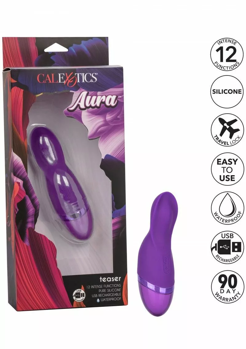 Deze opleg vibrator Aura Teaser is een welkome aanvulling op je assortiment sextoys. Zoals de naam al aangeeft leg je deze vibrator op je vagina waarna hij zijn werk doet. Het handige is dat je je handen vrij hebt voor andere dingen. Je kunt deze vibrator ook gebruiken bij verschillende standjes die je samen met je partner doet. De vibrator heeft maar liefst 12 verschillende vibratiestanden en je laadt de batterij in 2 uur op met de meegeleverde usb kabel. De vibrator is waterproof, je kunt hem dus ook in bad of onder de douche gebruiken.