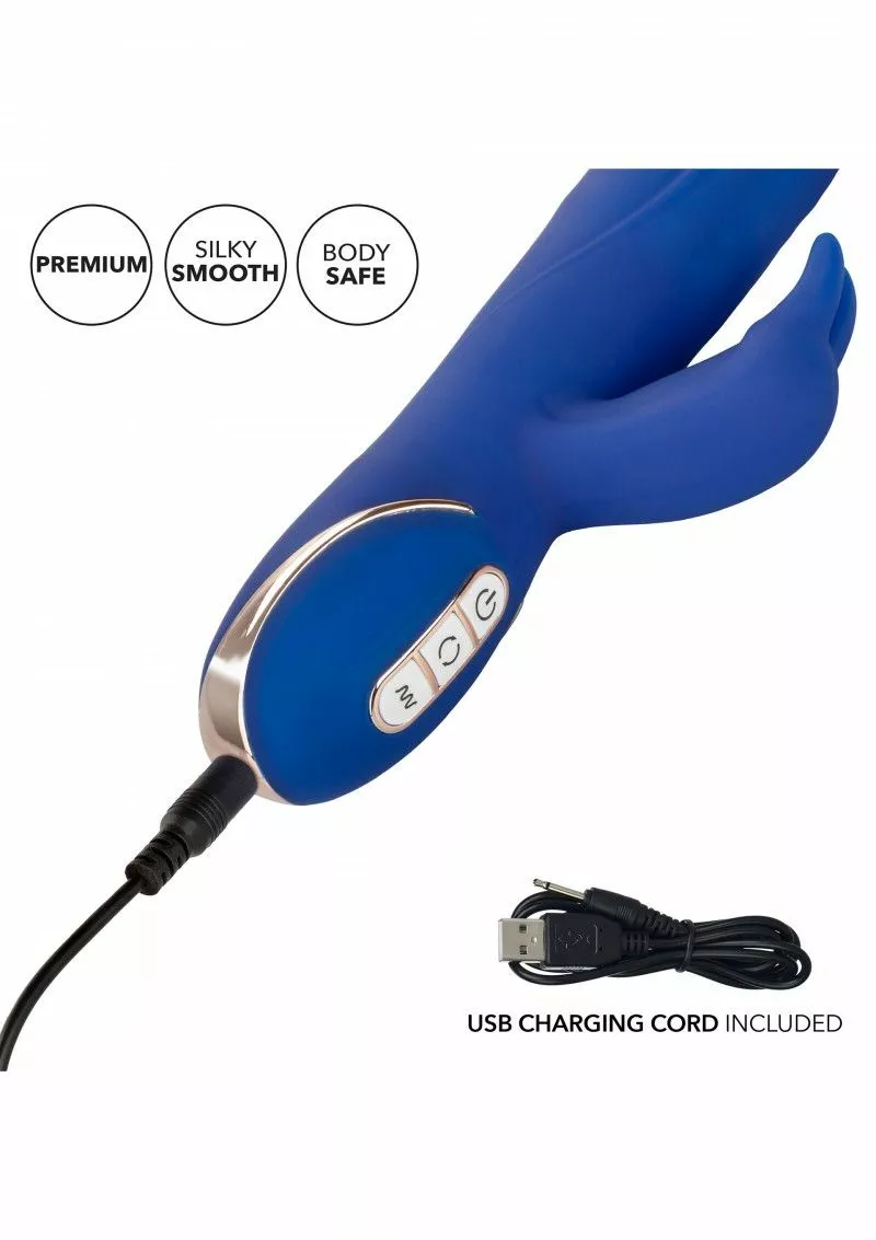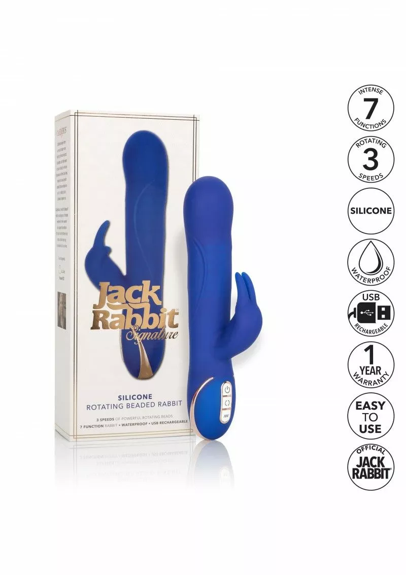 Voor de vrouw die weet wat ze wil. De Roterende Vibrator – Jack Rabbit Paars is een geweldige toy voor elke vrouw die graag wil genieten van een perfect solo avondje. Deze luxe vibrator heeft roterende beads in de bovenkant van zijn schacht zitten. Deze kan jij in 3 snelheden laten bewegen voor een intens gevoel. De tikkende oortjes verwennen tegelijkertijd je clitoris in 7 verschillende standen. Het is mogelijk om de schacht en de clitoris stimulator apart van elkaar te bedienen met het handige push button systeem. Laad de rabbit vibrator op met het meegeleverde usb kabeltje. In 2 uur is de toy volledig opgeladen. Geniet met een volledig opgeladen toy maar liefst 70 tot 80 minuten van intens plezier. De Roterende Vibrator – Jack Rabbit Paars wordt geleverd in een luxe opbergdoos. Berg hem na elk gebruik discreet op in deze mooie doos. Het zachte siliconen materiaal voelt fijn aan op de huid en het ontwerp is afgewerkt met gouden details voor een luxe look. Gebruik de toy ook in de badkamer, hij is namelijk waterproof.