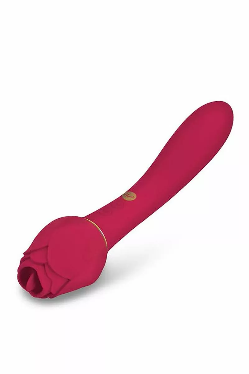 De Clitoris Stimulator RoseGasm van Secret Kisses is een clitoris stimulator en vibrator in één. De prachtige bloem is een krachtige clitorisstimulator met een flikkerende tong die direct op je clitoris is gericht. De andere kant heeft een insteekbaar uiteinde voor diepe interne stimulatie met 10 vibratiestanden en 5 vibratiesnelheden. De vibrator is gemaakt van fluweelzachte, lichaamsveilige siliconen. Wanneer RoseGasm leeg is laad je het speeltje gemakkelijk op met de meegeleverde USB oplaadkabel.