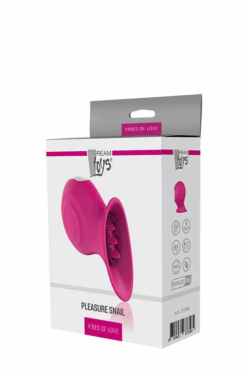 Laat je verwennen door deze heerlijke Clitoris Stimulator Pleasure Snail Magenta. Deze clitorris vibrator is gemaakt van zacht siliconen materiaal en heeft een ergonomische vorm. Hierdoor past de toy perfect over je vulva heen. De binnenkant is voorzien van 3 tongetjes en nopjes die jouw clitoris lekker zullen verwennen. De 9 verschillende standjes zijn te bedienen met het push button knopje aan de bovenkant van de Clitoris Vibrator Pleasure Snake Magneta. De toy is oplaadbaar. Bij een volledige lading kan jij tot wel 2 uur lang genieten van dit geweldige speeltje.