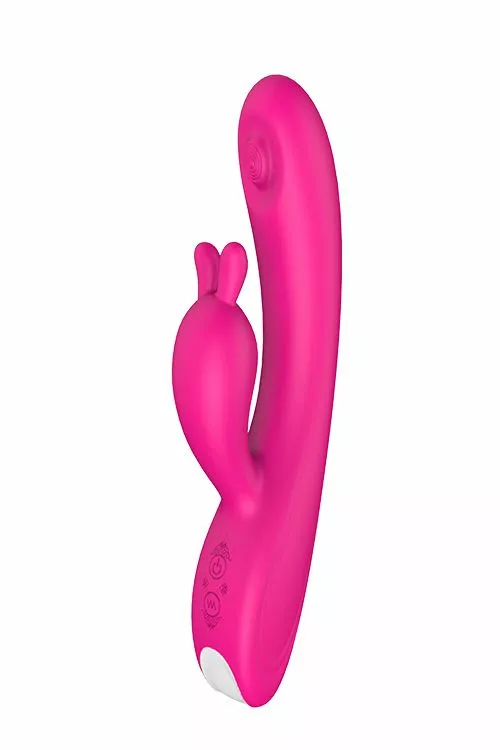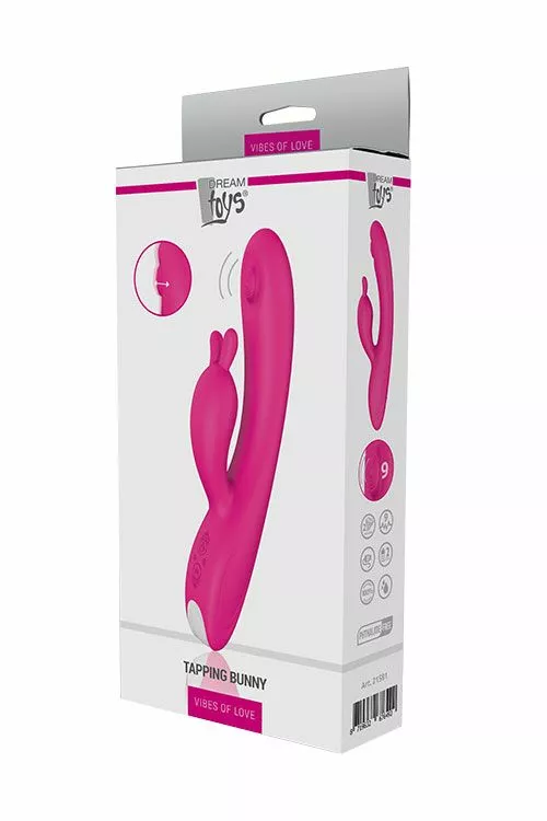 Met de Rabbit Vibrator Tapping Bunny Magenta heb jij een geweldige toy die jij perfect kan gebruiken om je g-spot te stimuleren. De bovenkant van de schacht geeft een kloppende beweging tegen je g-spot waardoor deze heerlijk gestimuleerd wordt en waardoor jij gegarandeerd een inwendig orgasme zal gaan beleven. Tegelijkertijd stimuleer ij je clitoris met de oortjes van de clitoris stimulator. De rabbit vibrator zal jou verwennen et maar liefst 9 standen. Zowel in de schacht als in de clitoris stimulator. Deze kan jij ook afhankelijk van elkaar bedienen met het push button systeem aan de onderkant. De toy is oplaadbaar met het meegeleverde usb kabeltje. Maak na gebruik goed schoon onder de kraan met een milde zeep en een toycleaner.
