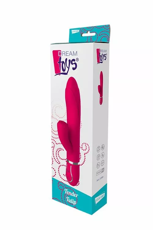 Deze roze Tender Tulip vibrator van Dreamtoys heeft zijn naam te danken aan de vorm van zijn schacht. Deze is namelijk in tulp vorm en zal jou intens stimuleren. Je bent nog nooit zo blij met bloemen geweest! Terwijl de tulp voor heerlijke interne stimulatie zorgt, zal de clitorisstimulator met nopjes je clitoris beroeren. Deze heerlijke dubbele stimulatie zal jou doen trillen van genot. Tender Tulip heeft 2 krachtige motoren en maar liefst 10 verschillende vibratiestanden. Ontdek ze allemaal en bedien ze gemakkelijk met het push button systeem. Deze roze vibrator is fluisterstil waardoor je hem zeer discreet kunt gebruiken. Als jij net zo stil kunt blijven tenminste.. Tender Tulip is waterproof dus gaat ook graag met je mee in bad of onder de douche.