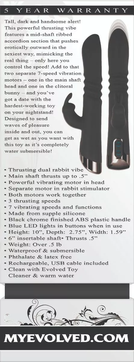 De Rabbit Vibrator Rapid van Evolved is gemaakt van soepel siliconen. Rapid heeft twee motoren, één in de kop van de hoofdschacht en één in het clitoriskonijntje. De 3 stuwsnelheden en 7 vibratiestanden zijn afzonderlijk of samen te bedienen op het speeltje zelf. Neem Rapid mee in bad of onder de douche, de vibrator is namelijk waterdicht.