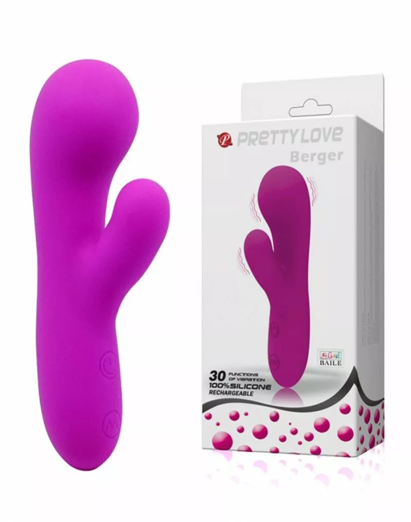 Rabbit vibrator Berger van Pretty Love is een vibrator waar je niet snel op uitgekeken zult raken. Met maar liefst 30 verschillende standen blijft hij je verrassen en blijf je nieuwe sensaties ontdekken. De dikkere kop is perfect voor interne stimulatie of voor massages, terwijl de kleine stimulator zich op jouw clitoris richt. Het siliconen materiaal voelt zacht aan en kan gebruikt worden in combinatie met glijmiddel op waterbasis. Met zijn compacte formaat van 14,5 cm en 3,8 diameter kun je Rabbit vibrator Berger ook gemakkelijk met je meenemen op reis. Omdat je hem na gebruik gemakkelijk weer kunt opladen met een USB kabel hoef je je nooit druk te maken om batterijen.