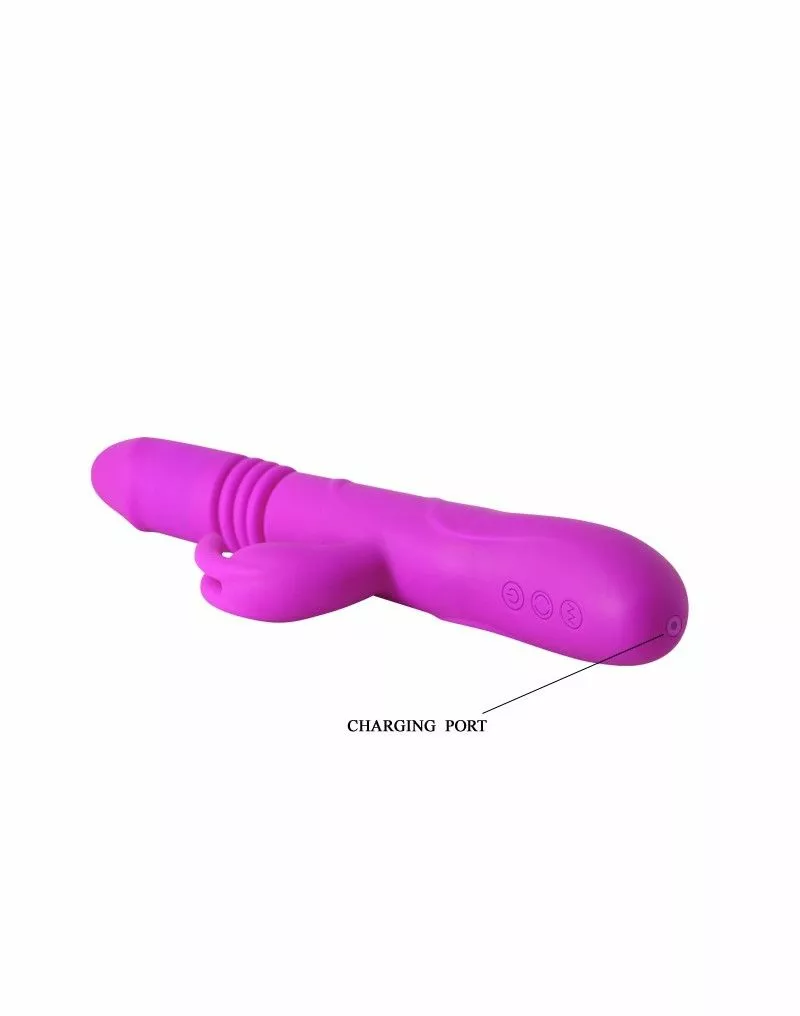 Deze heerlijke rabbit vibrator mag absoluut niet ontbreken in jouw nachtkastje. Hij is perfect voor beginners maar ook voor ervaren liefhebbers van rabbit vibrators. Deze schitterende toy zal jou op heel veel manieren heerlijk verwennen. Hij zal een roterende beweging geven aan de bovenkant zodat je g-spot fijn wordt gestimuleerd. En als extra heeft deze heerlijke toy een stotende functie zodat, wanneer hij wordt gebruikt, jij het gevoel hebt dat je echt wordt genomen. De clitoris stimulator zal zijn bunny oortjes lekker laten bewegen op jouw clitoris voor dubbele sensaties. De toy verrast jou met wel 12 verschillende vibraties en 4 verschillende roterende functies. Te bedienen via het handige push button systeem aan de onderkant van de toy. Tevens is de toy oplaadbaar via het meegeleverde usb kabeltje zodat hij altijd en overal zal werken.