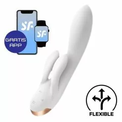 Houd je van intense stimulatie, bij voorkeur op je beide favoriete spots tegelijk? Maak dan kennis met Satisfyer Double Flex, een veelzijdige rabbit vibrator! De Double Flex beschikt over 3 krachtige motoren die intense vibraties tot stand brengen voor clitoris- en g-spot stimulatie. De clitoris wordt verwend door twee flexible armpjes terwijl de gebogen schacht moeiteloos de g-spot bereikt. Deze dubbele stimulatie in combinatie met intense vibraties laat je genieten van ongekende hoogtepunten.