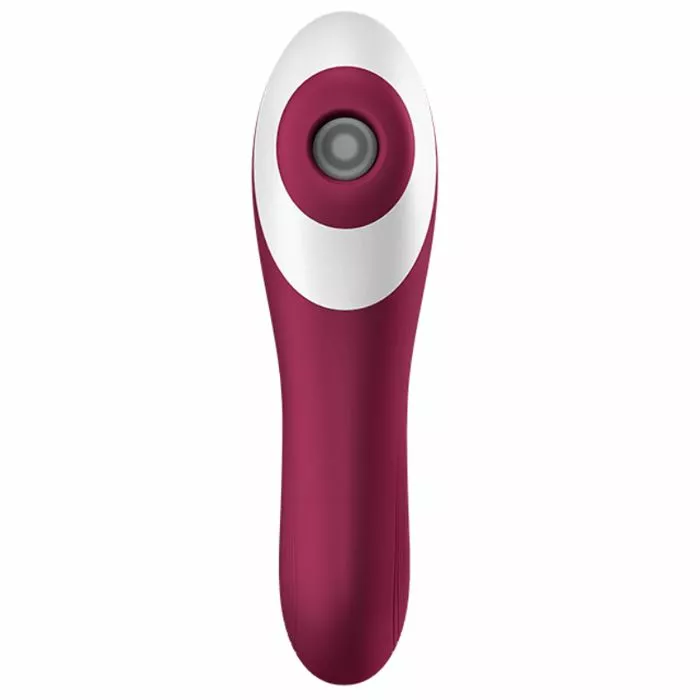 Met de Dual Crush slaat Satisfyer twee vliegen in één klap! Deze vibrator is namelijk aan twee kanten te gebruiken. Het bovenste gedeelte is voor clitoris stimulatie d.m.v. luchtdrukpulsatie en het onderste gedeelte voor inwendige stimulatie in combinatie met heerlijke vibraties. Dankzij de gebogen schacht is de Dual Crush geschikt voor intense g-spot stimulatie dat explosieve orgasmes kan opwekken. De luchtdruk vibrator beschikt over maar liefst 11 luchtdrukpatronen en 10 vibratiestanden die afzonderlijk van elkaar te bedienen zijn met het pushbutton systeem.