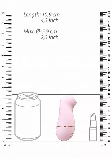Deze zuigende vibrator van Shots Irresistible is een ware sensatie voor vrouwen die op zoek zijn naar een sextoy waarmee je in not-time een orgasme kan bereiken. De Kissable is een vibrator die gebruik maakt van een sensationele zuigende werking. De vibrator beschikt over een een zacht rond siliconen kapje die je over je clitoris legt waarna je het apparaat kan activeren om vervolgens te kunnen kiezen uit maar liefst 11 verschillende zuigstanden. De zuigstanden zijn eenvoudig middels de drukknoppen te bedienen op de onderzijde van de vibrator.