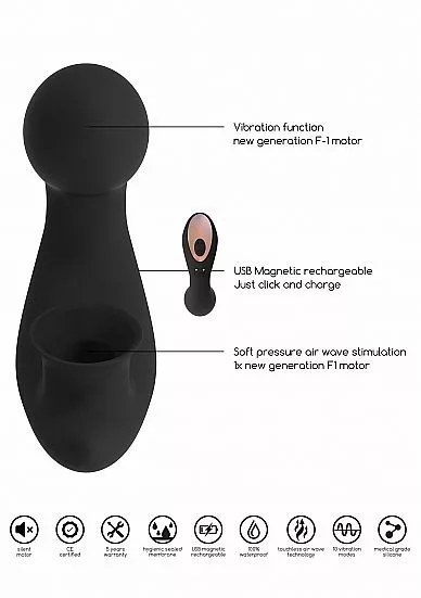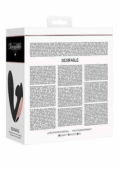 Voor een heerlijke zuigfunctie met een fijne penetratie ga jij voor deze Vibrator met Zuigfunctie Desirable van Shots Irresistible. De vibrator is voorzien van een handig push button systeem waarmee jij de diverse standjes makkelijk kan bedienen. De ronde vorm van de schacht glijdt makkelijk naar binnen. Laat het zuigmondje op je clitoris rusten en schakel de toy in. Ervaar een geweldige dubbele stimulatie van vibraties en zuigende standen. Na gebruik reinig jij snel en hygienisch je toy onder de kraan gevolgd door een toycleaner. Laad de vibrator met zuigfunctie Desirable nadien makkelijk op met het meegeleverde usb kabeltje zodat jij bij het volgende avontuur direct weer aan de slag kan gaan. De toy heeft een oplaadtijd nodig van 120 minuten waarna jij er 60 minuten mee aan de slag kan gaan. De Vibrator met Zuigfunctie Desirable is afgewerkt met gouden details voor een luxe look.