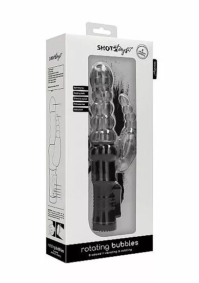 Metd eze geweldige Rabbit vibrator Rotating Bubbles – Zwart word jij inwendig verwend door wel 6 stimulerende beads en uitwendig door een beaded clitoris stimulator voor dubbele stimulatie. De roterende kop zal heerlijk heen en weer bewegen in jouw vagina terwijl de clitoris stimulator jou heerlijk genot zal brengen. Met wel 8 verschillende standjes zal er altijd wel een perfecte vibratie voor jou bij zitten. Met wel 15.500 omwentelingen per minuut ervaar jij deze Rabbit Vibrator als enorm krachtig en met zijn geluidsniveau van maar 50 dB kan jij overal onbezorgd genieten van deze heerlijke toy. De waterdichte toy (IPX7) kan ook gerust in de badkamer gebruikt worden.