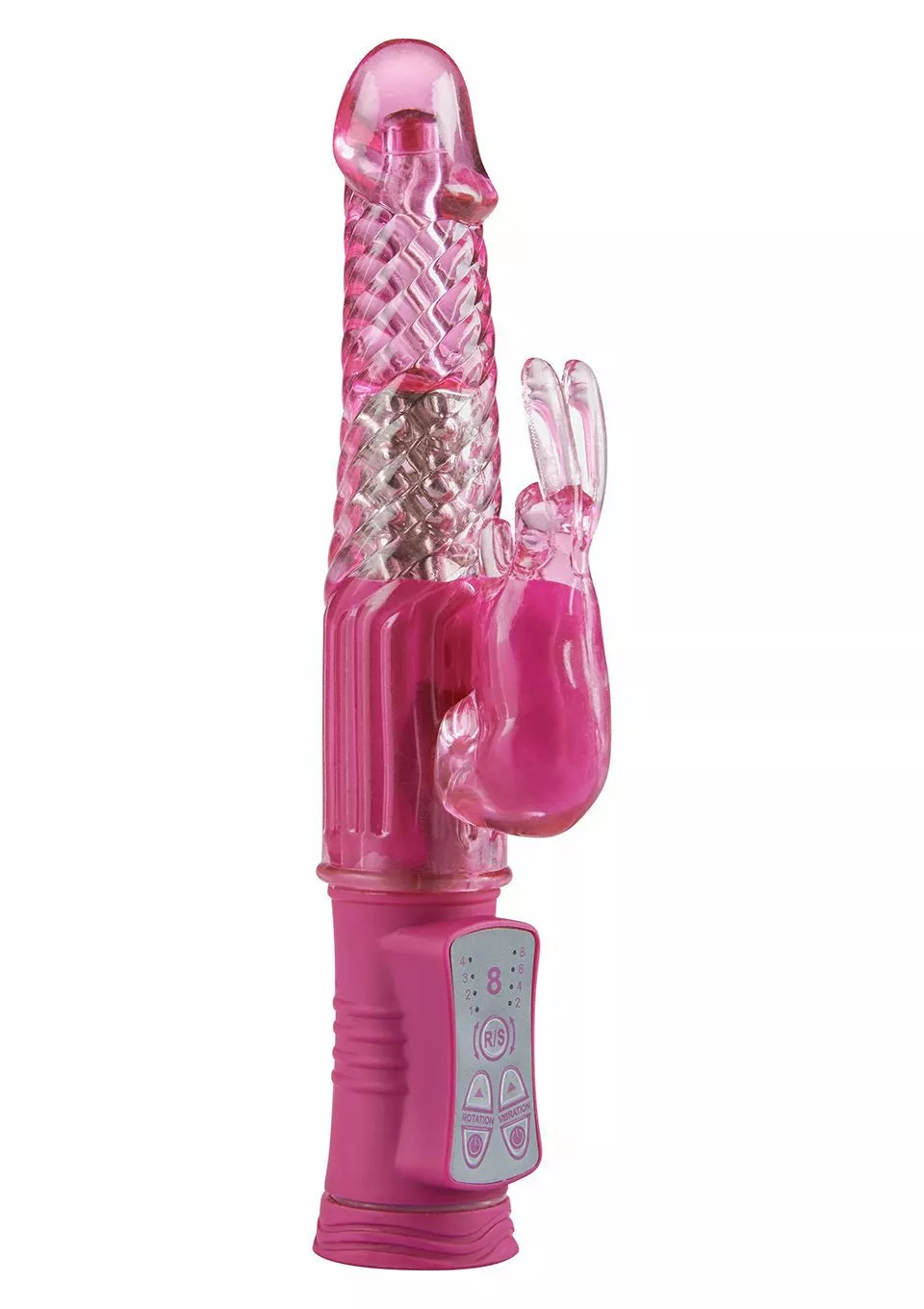 Deze spannende bunny vibrator is van een hoogwaardig kwaliteit en zal jou doen stuiteren van genot. Het ontwerp is voorzien van bi-directionele roterende beads en een twin-motor voor dubbele stimulatie en intiem plezier. Deze must-have toy is USB-oplaadbaar middels het meegeleverde kabeltje en heeft een unieke, licht geribbelde schacht. De slanke vibrator wordt geleverd met een ondeugende maar sexy clitoris stimulator in de vorm van een bunny en biedt maar liefst 8 vibratie functies en wel 4 roterende snelheden. De bediening van de vibrator is super eenvoudig en gebeurt middels het push-button systeem op het handvat. Ontdek wat dit spannende konijntje uit de geweldige Toyjoy collectie voor jou kan betekenen en ga op een heerlijke ontdekkingsreis naar jouw ultieme verlangen.
