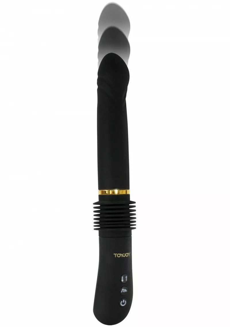 Geniet van deze stotende vibrator en heb een ervaring die haast niet van echt is te onderscheiden. Hij groeit met wel 6 centimeters terwijl hij binnenin jou zit, jij hoeft dus zelf de beweging niet te maken. Alsof jij heerlijk wordt genomen. Hij is te bedienen met het handige pushbutton systeem aan de onderkant van de toy en hij stoot in 3 standen, vibreert in 3 snelheden en heeft 4 verschillende pulserende standen zodat jij heel de nacht met de Stotende Vibrator Magnum Opus – Zwart kan experimenteren. De toy is gemaakt van heerlijk zacht siliconen materiaal en de bovenkant heeft de vorm van een schitterende eikel. De gouden details zorgen voor de zeer luxe uitstraling van deze stotende vibrator. De toy is na afloop snel en eenvoudig te reinigen onder de kraan met ene milde zeep en een toycleaner.