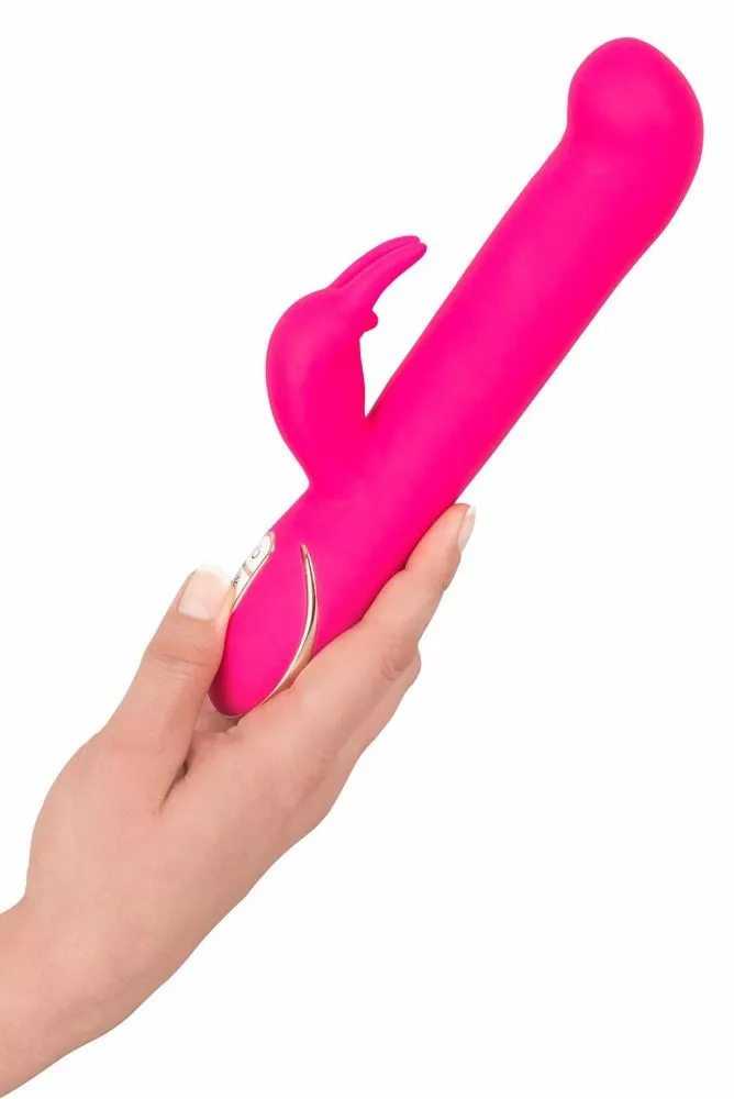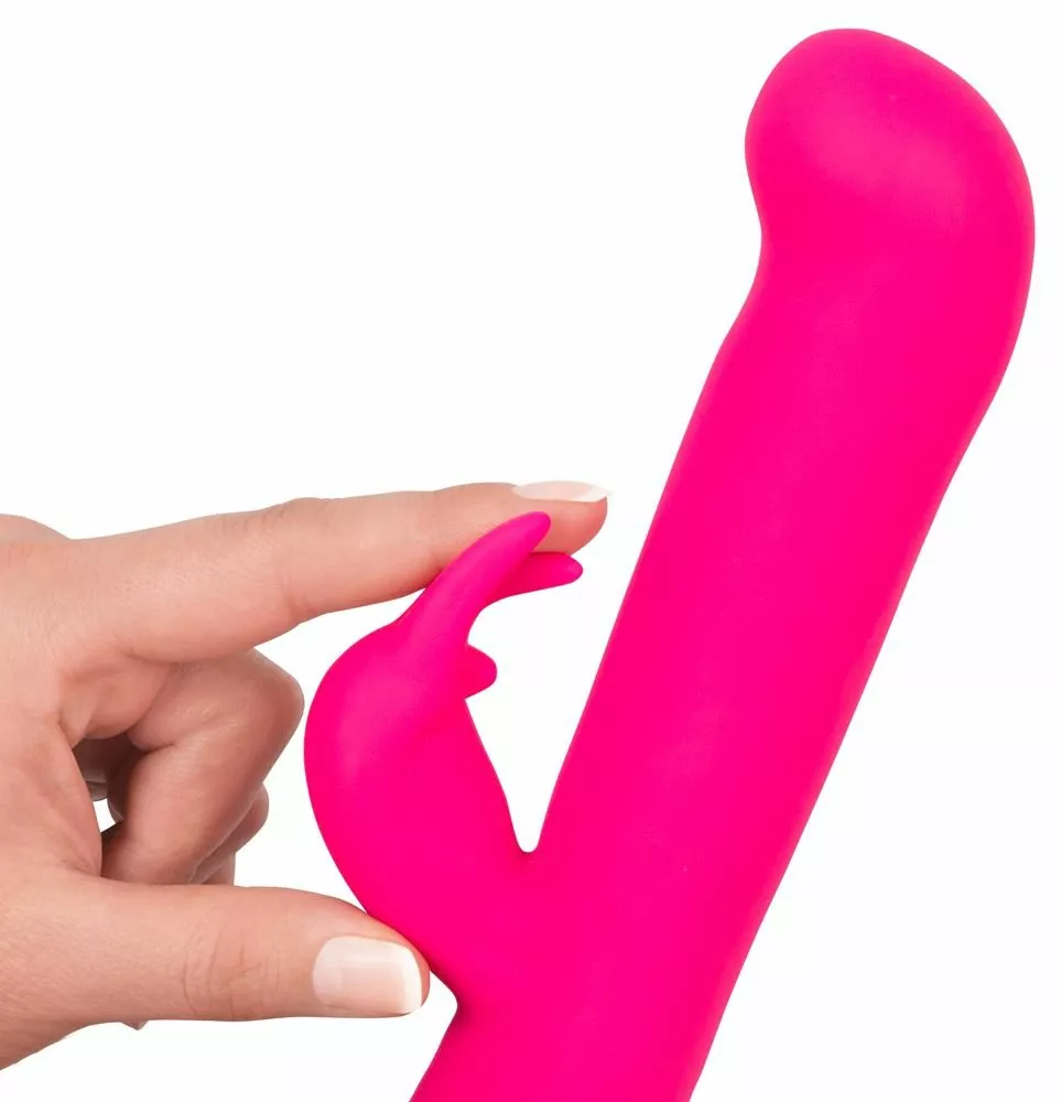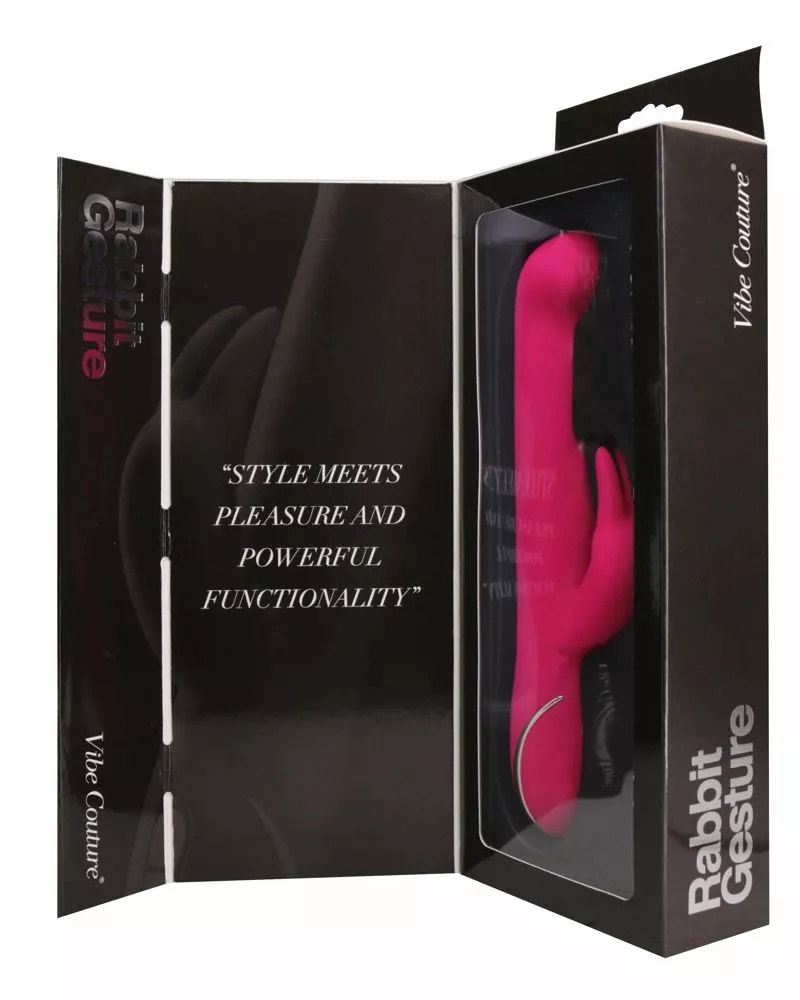 Verwen jezelf met een speeltje die precies weet hoe hij dat moet doen. Met de Rabbit Gesture van het merk Vibe Couture gun jij je G-spot en clitoris de beste kwaliteit. Dit roze konijntje weet van aanpakken en kan niet wachten om jou heerlijke orgasmes te gaan bezorgen. De Rabbit Gesture is gemaakt van zacht en bodysafe siliconen. Dit voelt niet alleen heerlijk aan op de huid, maar is ook veilig in gebruik. De vibrator heeft twee koppen waarmee hij zowel je G-spot als clitoris tegelijkertijd mee kan verwennen. Hij heeft een gebogen top en een bunny stimulator met lange oortjes aan de zijkant. De twee koppen hebben allebei een eigen krachtige motor, waardoor je deze apart kan bedienen. De grote kop vibreert niet, maar beweegt heen en weer. Met de bekende kom-hier-beweging masseert hij jouw G-spot op de meest ultieme manier mogelijk. De kop heeft 3 verschillende snelheden. Bouw het langzaam op of geniet meteen van de voor jou meest stimulerende snelheid. Terwijl je op dit punt waarschijnlijk al ligt te kronkelen van genot, is de Rabbit Gesture nog lang niet klaar. De twee kleine oortjes vibreren namelijk wel en zullen de clitoris stimuleren met intense trillingen. Ontdek de verschillende vibratiestanden van de clitoris stimulator en je zult heerlijk genieten van het dubbele plezier dat deze rabbit vibrator je brengt.