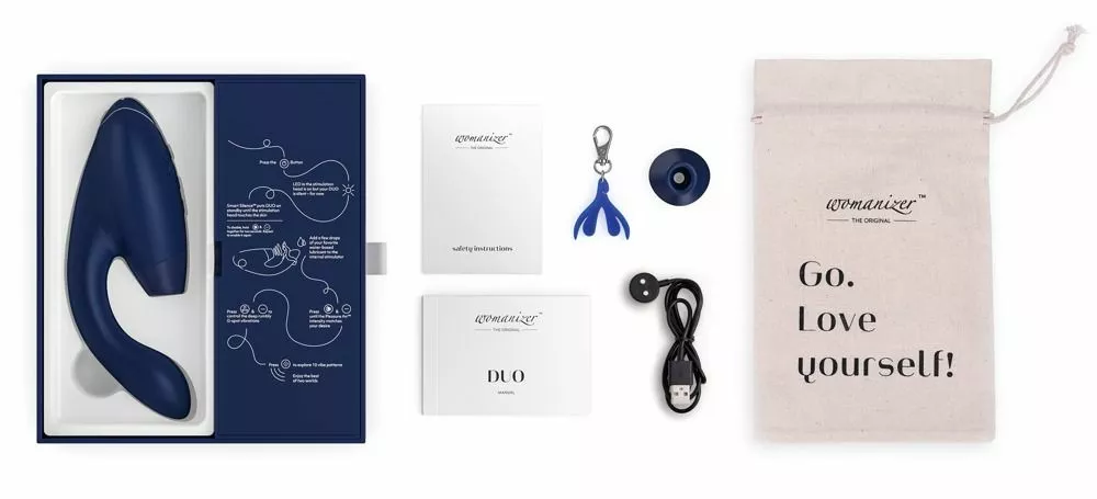 Duo is waterproof zodat jij ook in bad kan genieten van de heerlijke womanizer. Inclusief elegante opbergtas. Oplaadbaar met de meegeleverde magnetische USB-oplaadkabel.