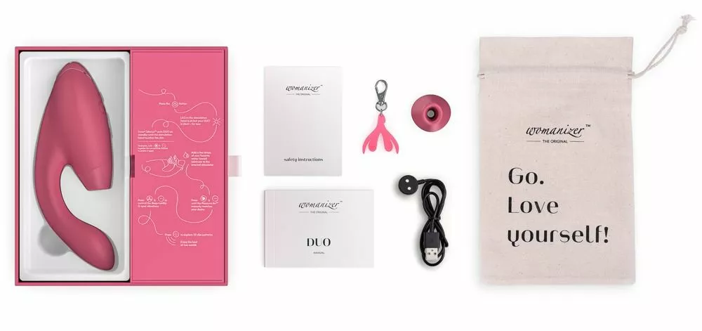 Duo is waterproof zodat jij ook in bad kan genieten van de heerlijke womanizer. Inclusief elegante opbergtas. Oplaadbaar met de meegeleverde magnetische USB-oplaadkabel.