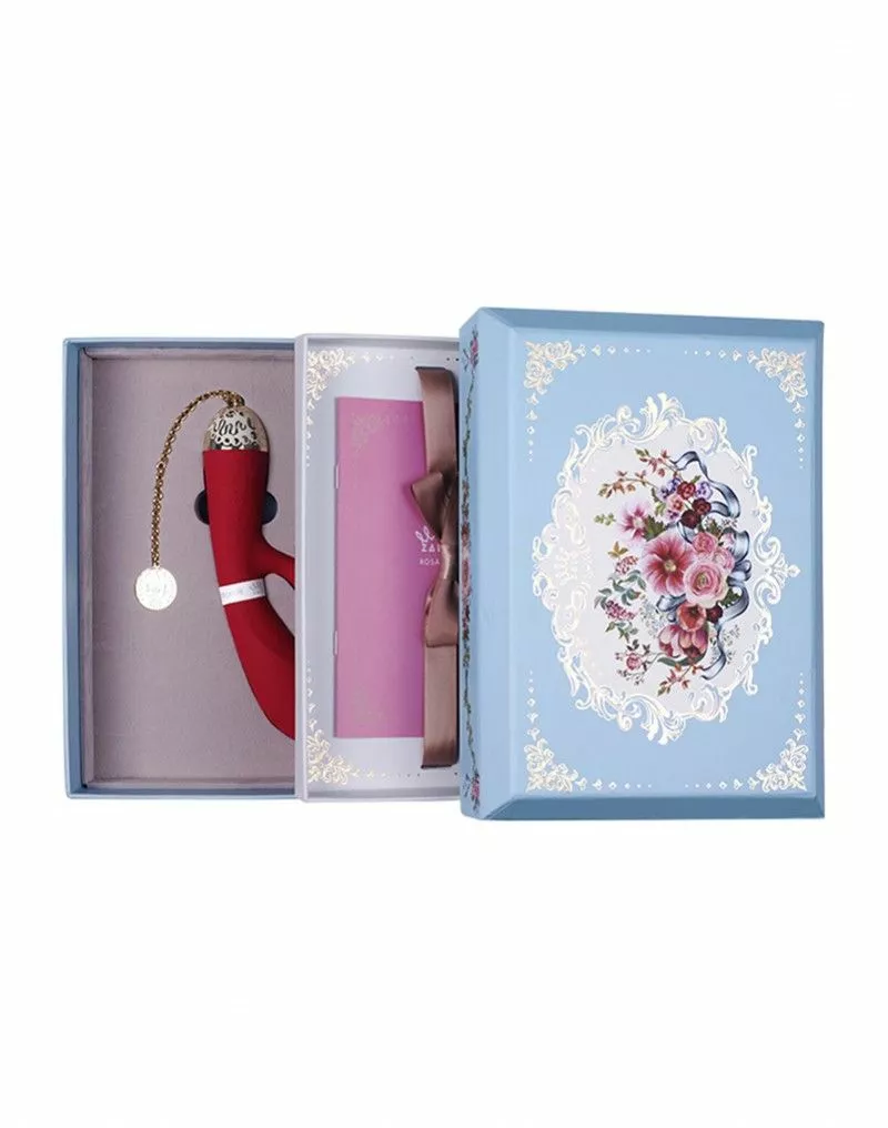 Dompel jezelf onder in luxe en genot met Rosalie! Rosalie is een rabbit vibrator van Zalo die je ook via je smartphone kunt bedienen. Naast het plezier dat Rosalie gegarandeerd teweeg zal brengen, is deze stijlvolle rabbit vibrator ook een lust voor het oog. De prachtige, diepe rode kleur, gouden onderkant met kettinkje en het prachtige reliëfontwerp maken van dit speeltje een ware eyecatcher en fashion statement.